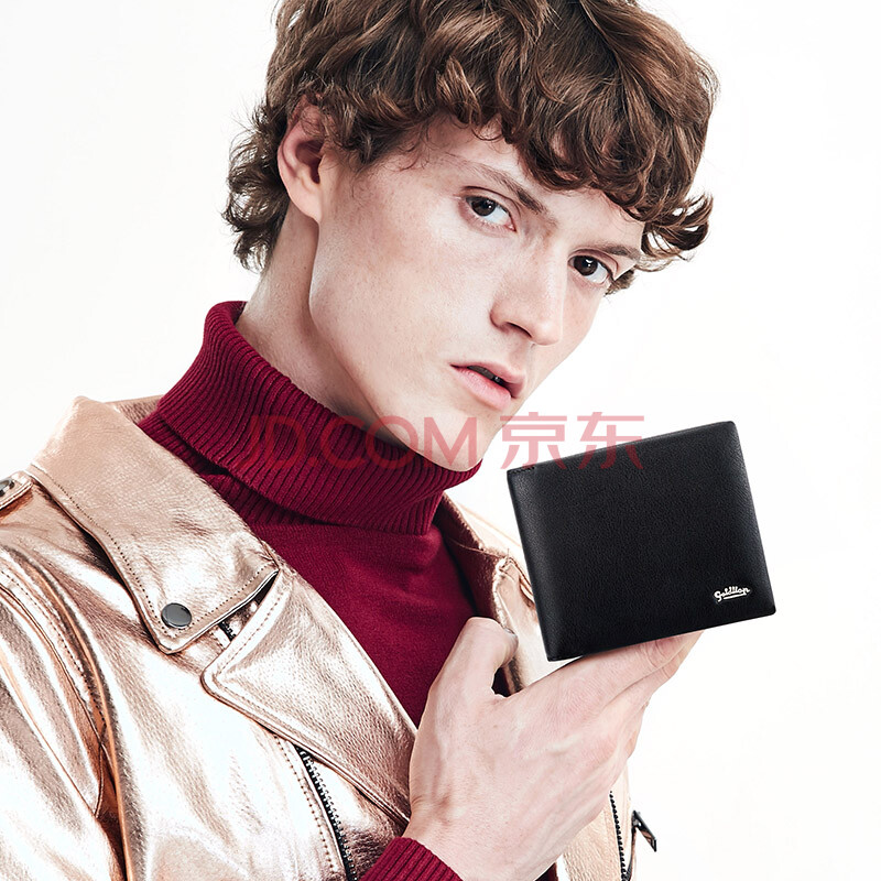 金利来(Goldlion)新款男士钱包商务休闲多功能钱夹牛皮票夹 横款黑色B715009-211