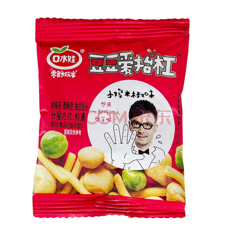 口水娃 豆豆爱抬扛 虾条青豆蚕豆零食 小鸡米椒味300g/袋