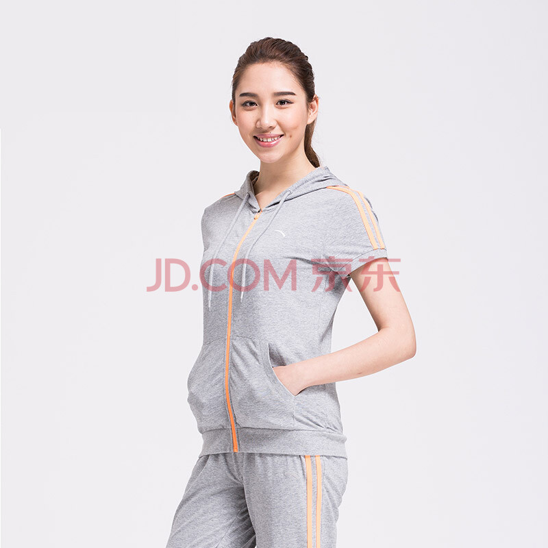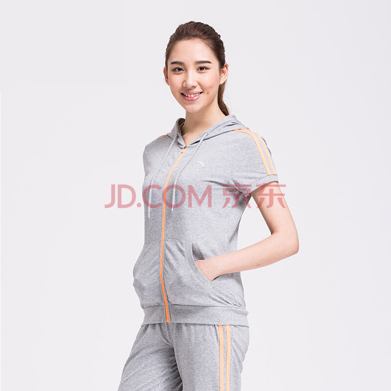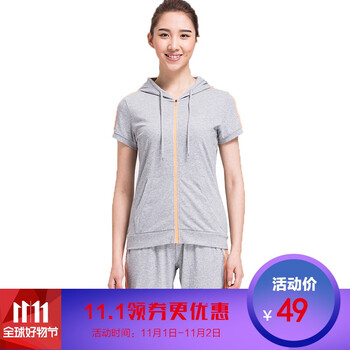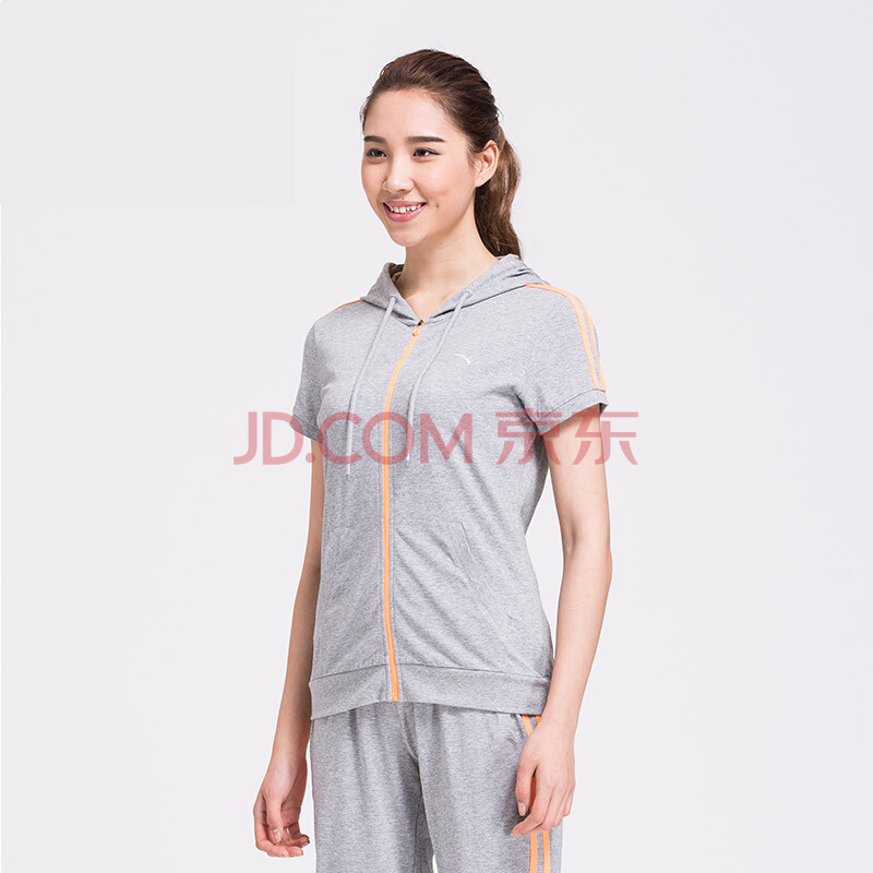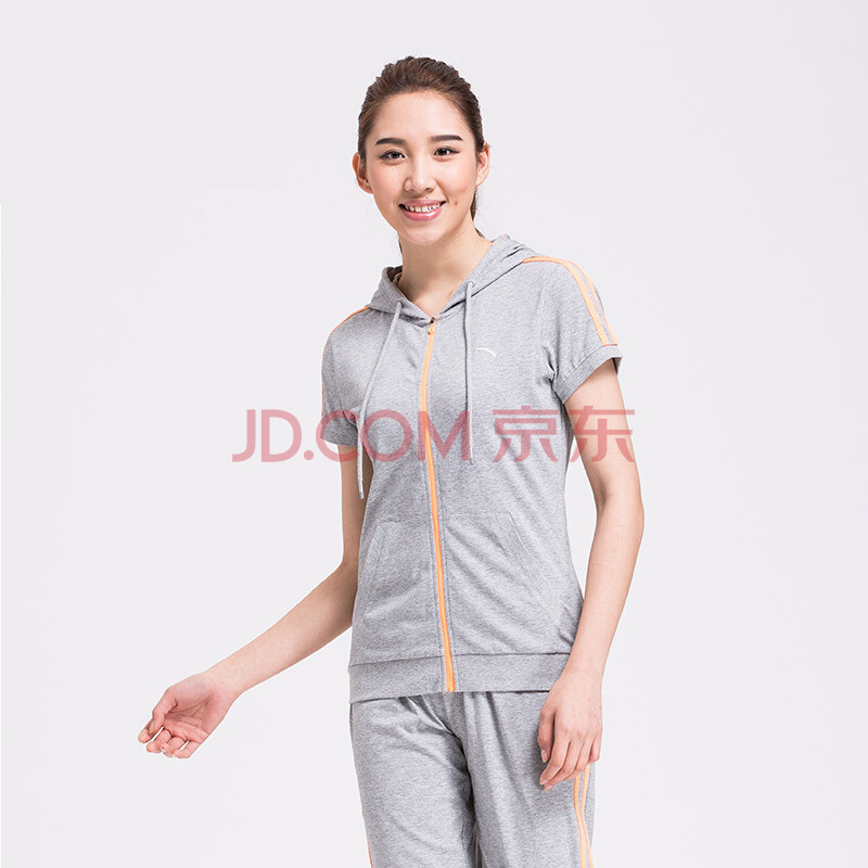 安踏(ANTA)女装16627171 运动服女短袖T恤针织衫休闲运动上衣 BC17灰花灰-1 XL(175/96A)