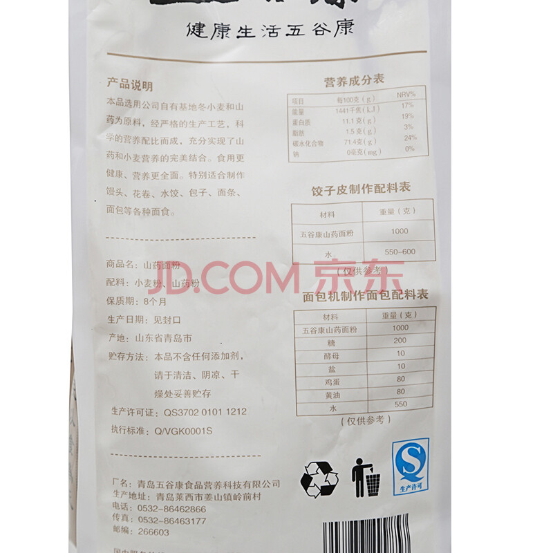 五谷康 山药面粉1000g 果蔬面粉