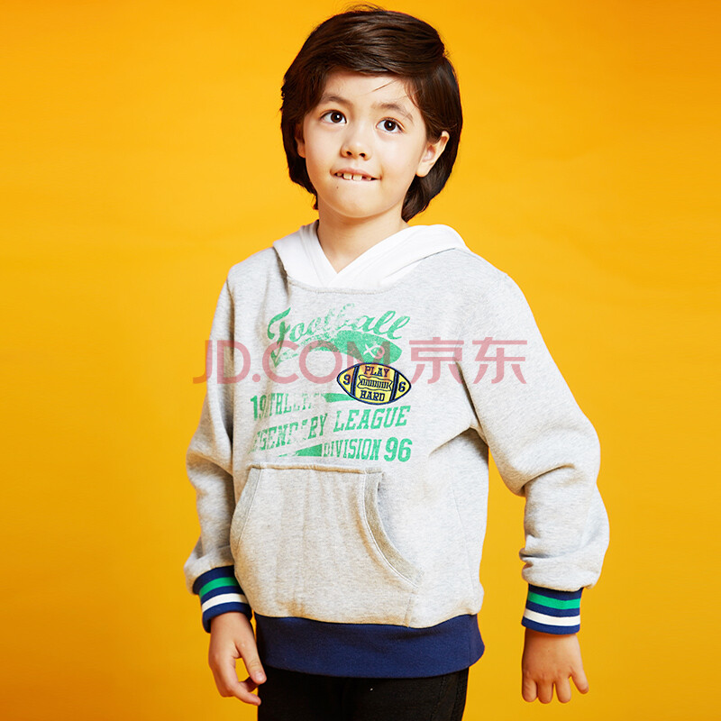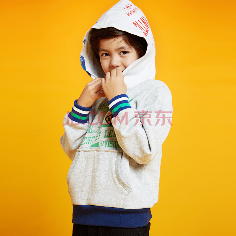 派克兰帝(PacLantic)儿童童装秋冬外套时尚印花套头卫衣 JGWK55104 浅花灰 150