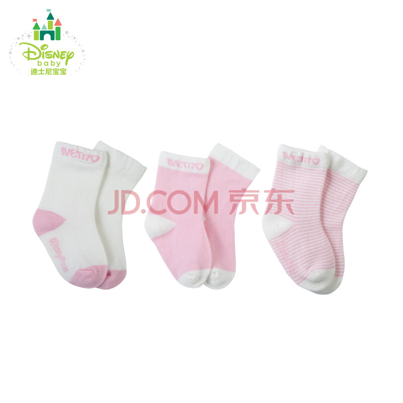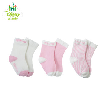 迪士尼(Disney)宝宝棉袜四季舒适平纹袜婴儿袜子(3双装)143P634 淡粉 0-3月