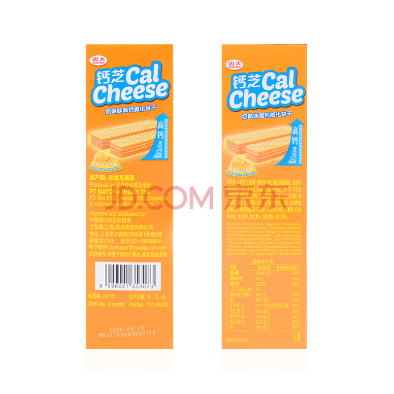 印尼进口 钙芝(Calcheese) 奶酪味高钙威化饼干 234g/盒
