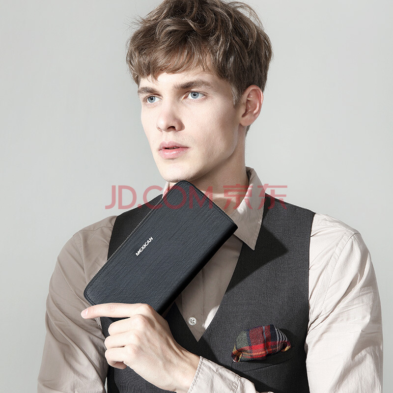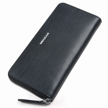 稻草人(MEXICAN)时尚手包男士钱包长款拉链男式手拿包牛皮大容量商务男包40187M-01黑色