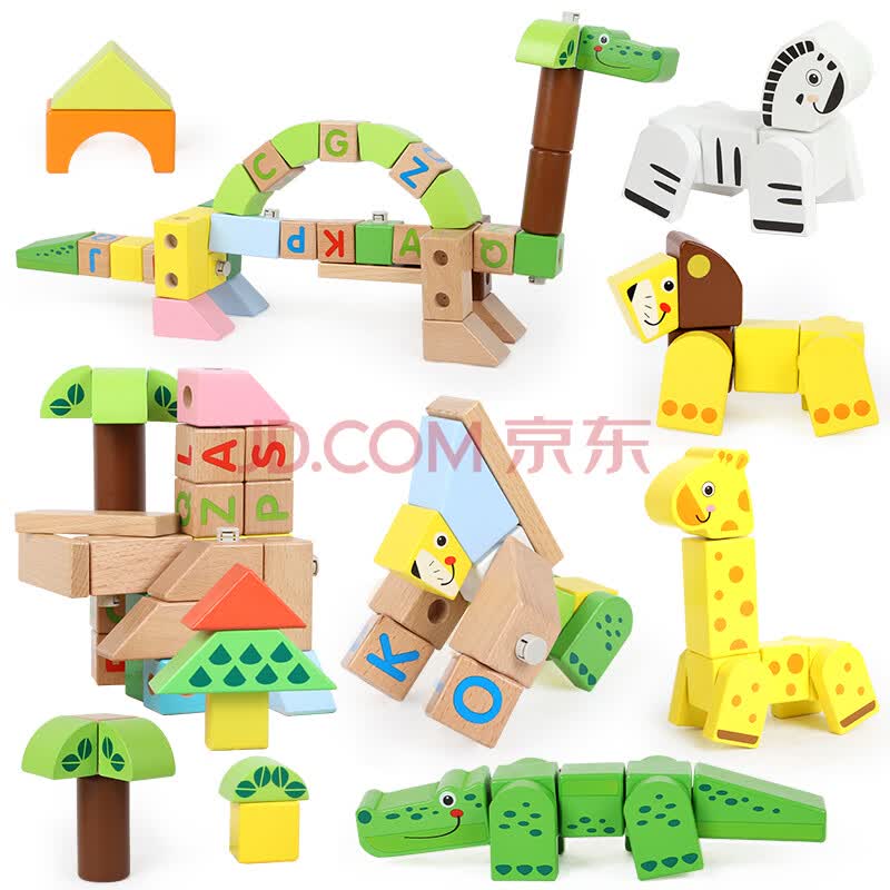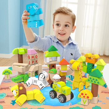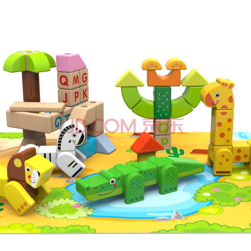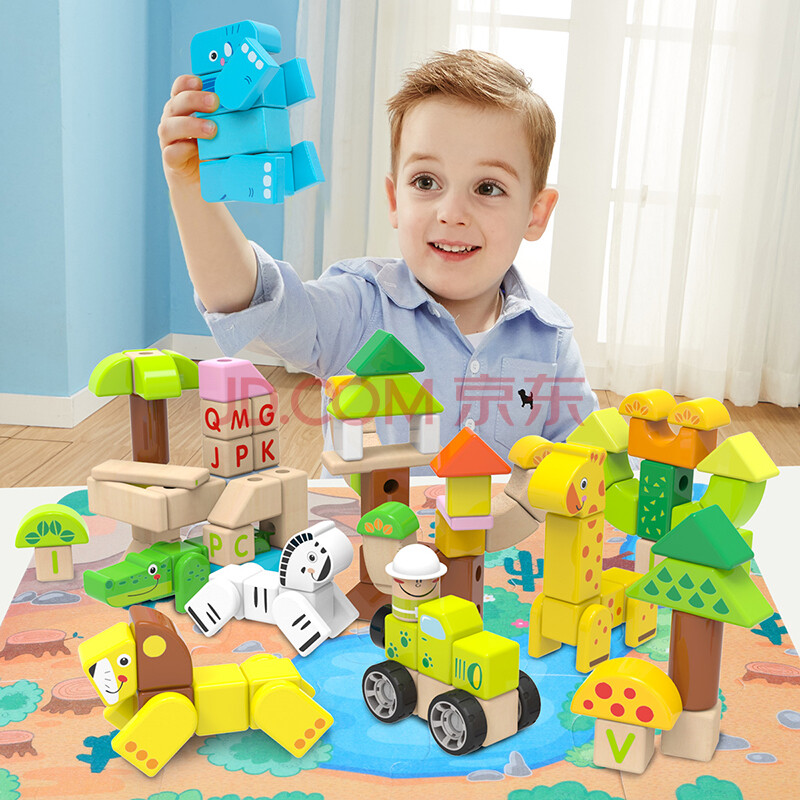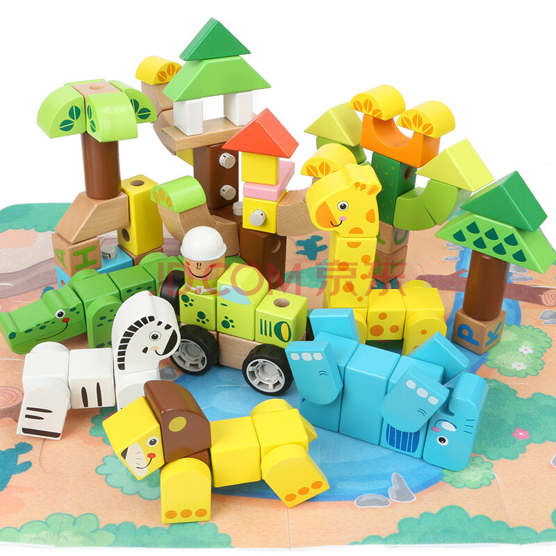 特宝儿(topbright)TAUNO动物积木 120粒大颗粒拼插积木玩具 木质拼装益智儿童玩具
