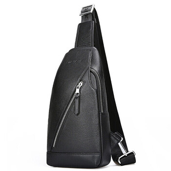 稻草人(MEXICAN)男士胸包休闲运动单肩包潮流小背包牛皮质感斜挎包90038黑色