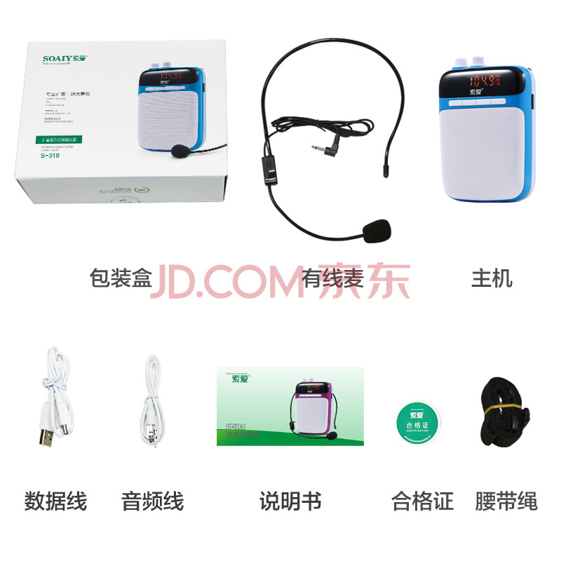 索爱(soaiy)S-318 便携式数码扩音器 大功率小蜜蜂扩音器教学专用教师导游 插卡播放器 唱戏机 月光蓝