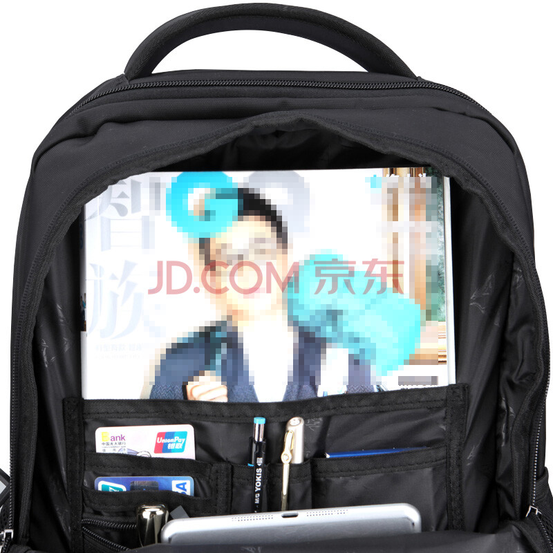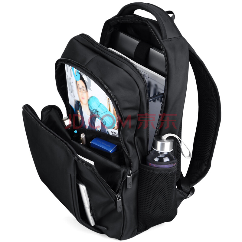 七匹狼 男士电脑包双肩包大容量牛津布15.6英寸休闲背包学生书包 黑色B0101054-101