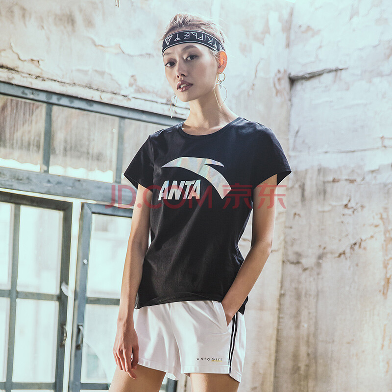 安踏(ANTA)96828134 女装 女子2018夏季新款短袖透气T恤修店休闲上衣 A92203基础黑 XS(女155)