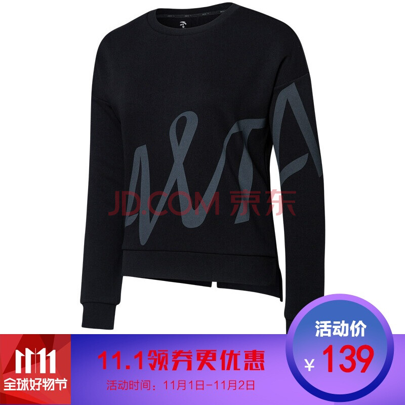 安踏(ANTA)16738732 门店同款女装 2017新品运动上衣 针织款套头卫衣女子 基础黑 2XL(女180)