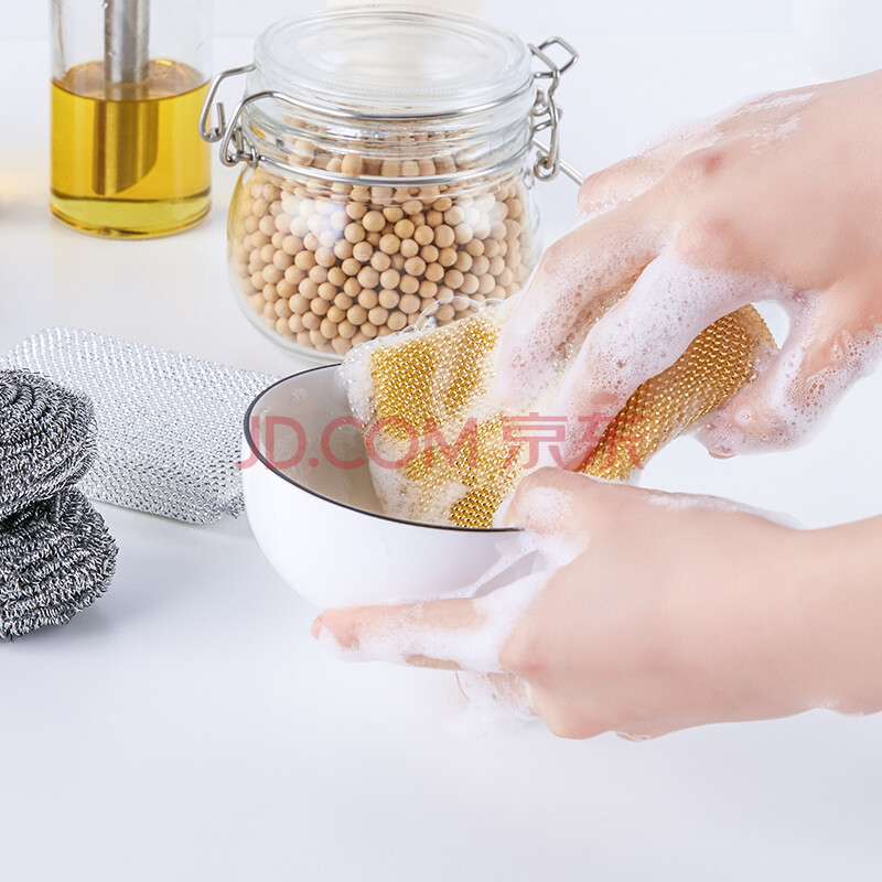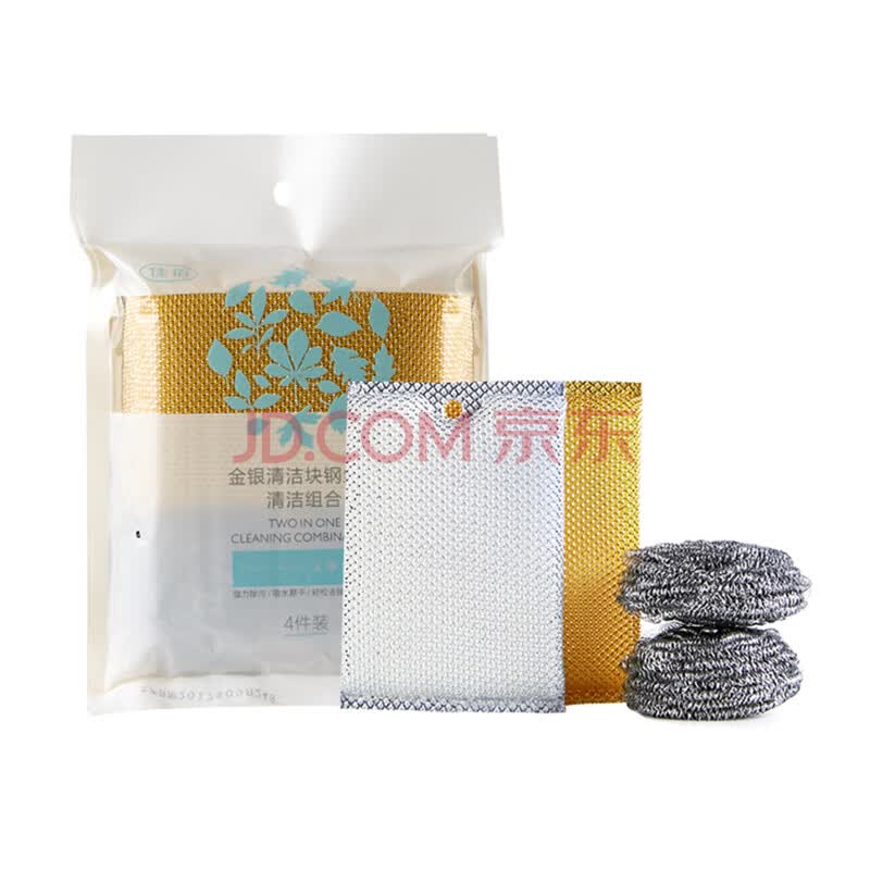 佳佰 金银渔网海钢丝球组合 金银渔网不粘锅专用悬挂设计卫生易收纳 钢丝球超强去污 4件装 JB0902