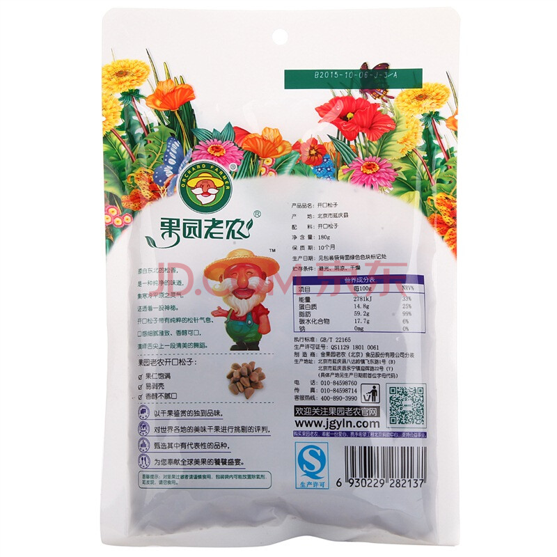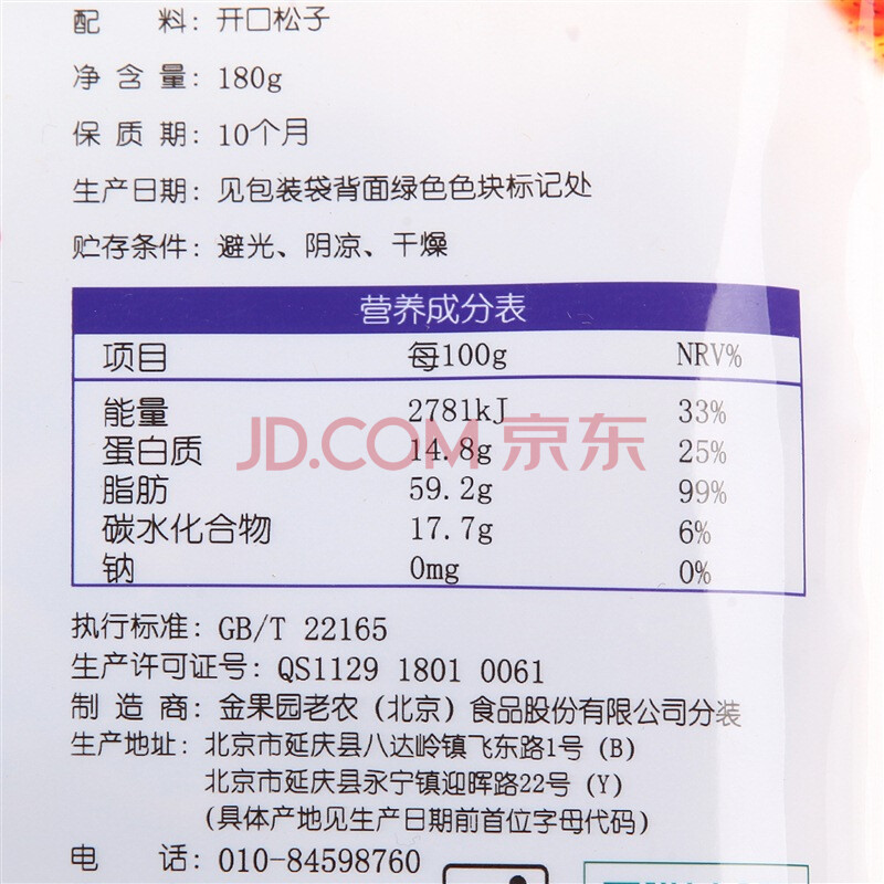 果园老农 松子 坚果炒货 休闲零食 东北开口松子非油炸180g
