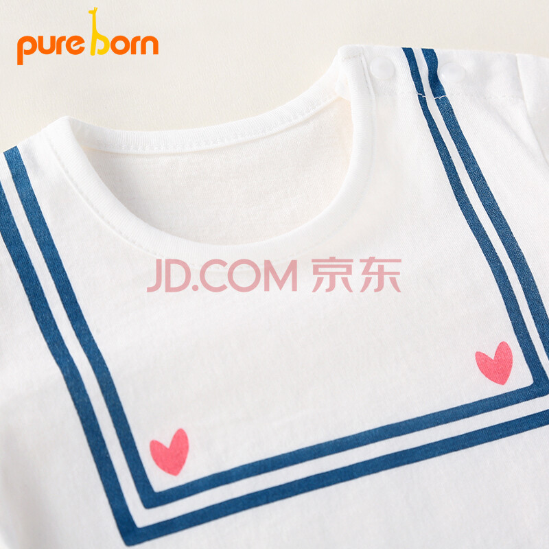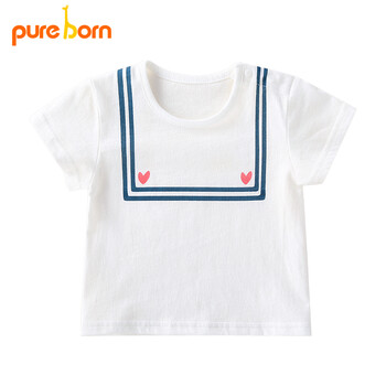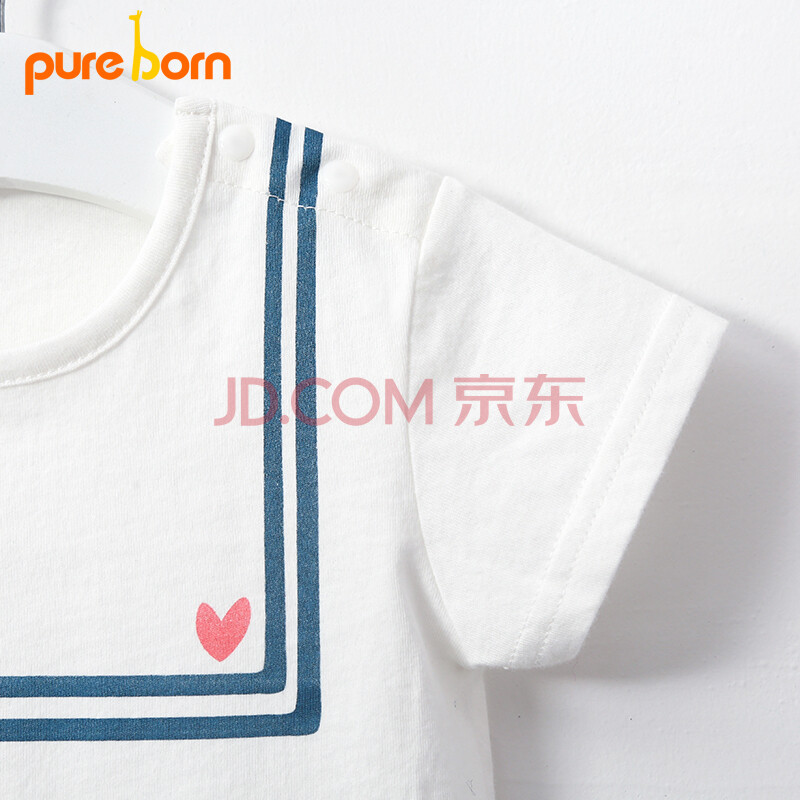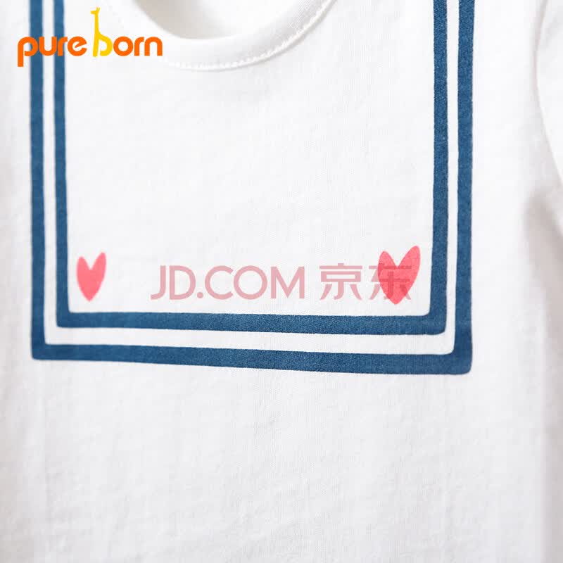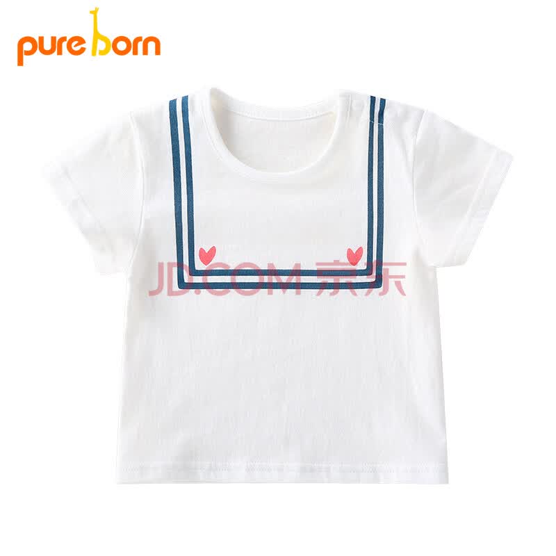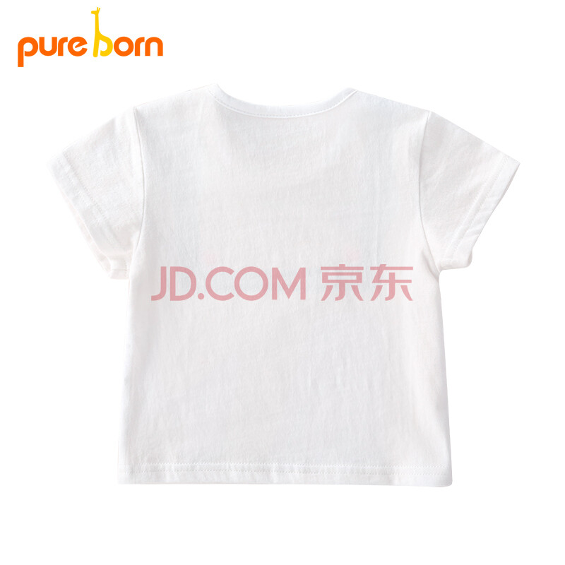 博睿恩Pureborn夏季男女宝宝短袖T恤儿童夏装婴儿纯棉上衣本白 90cm/1-2岁