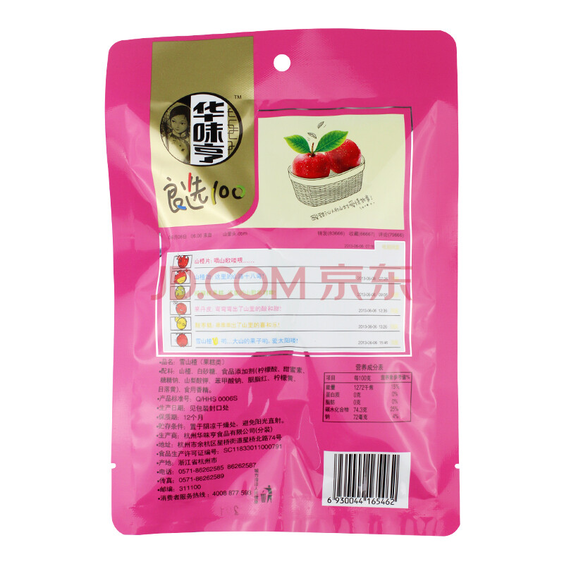 华味亨 山楂180g/袋 休闲食品 零食 山楂干 山楂片 山楂条 办公零食小吃