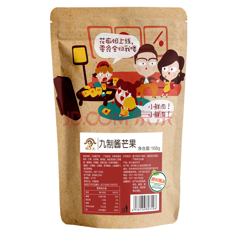 姚太太 蜜饯果干 休闲零食 九制酱芒果168g