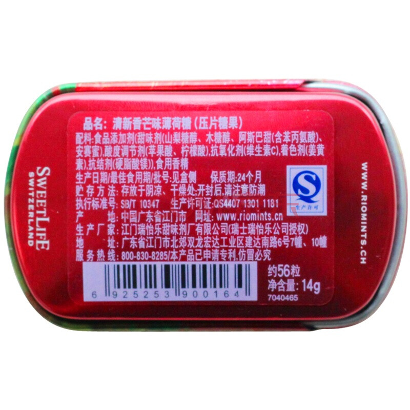 Rio 瑞欧 无糖薄荷糖 清新香芒味14g(盒装)