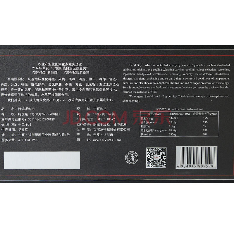 百瑞源 宁夏枸杞 特优级 免洗中宁枸杞幸福红礼盒520g