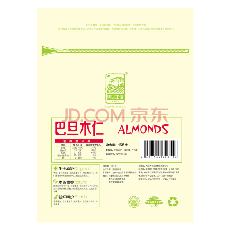 阿甘正馔 巴旦木仁 坚果零食炒货168g/袋