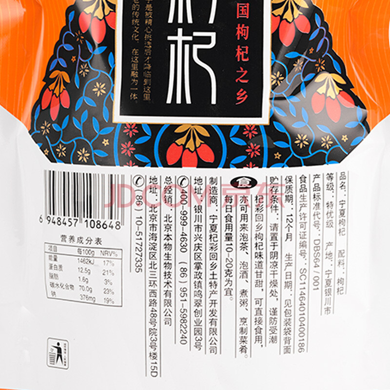 杞彩回乡 宁夏特产 宁夏枸杞子 特优级枸杞250g