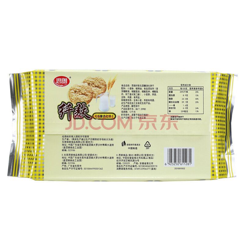 思朗纤麸 无添糖消化饼干粗粮全麦无添糖代餐饼干456g