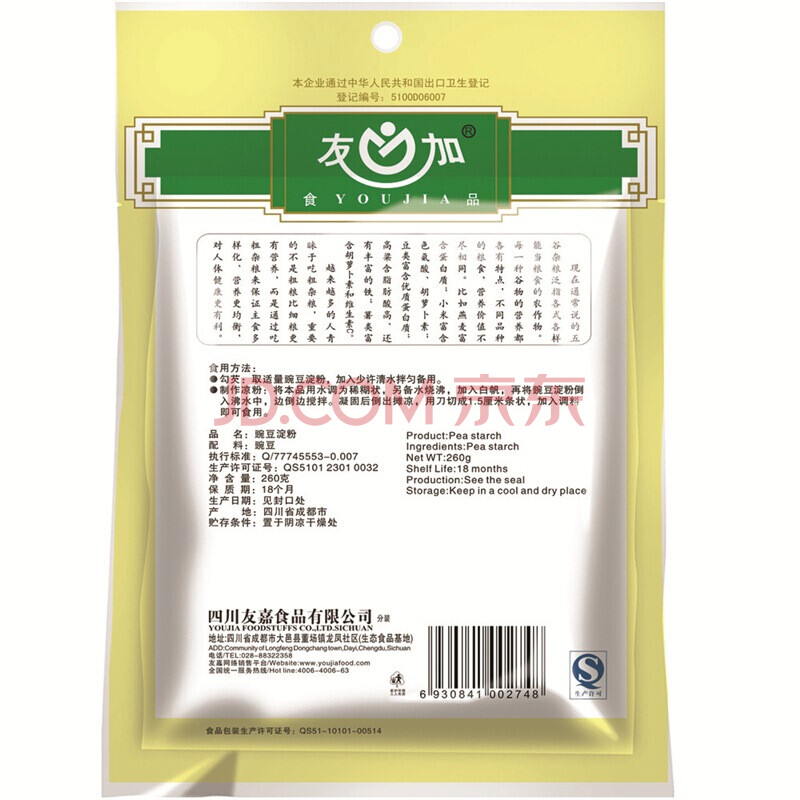四川特产 友加豌豆淀粉260g 伤心凉粉原料