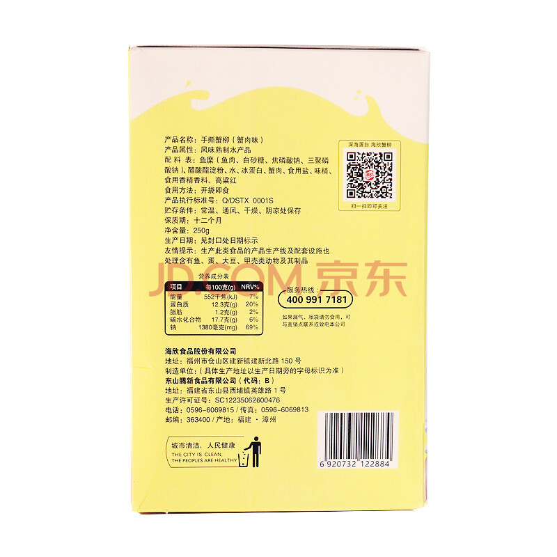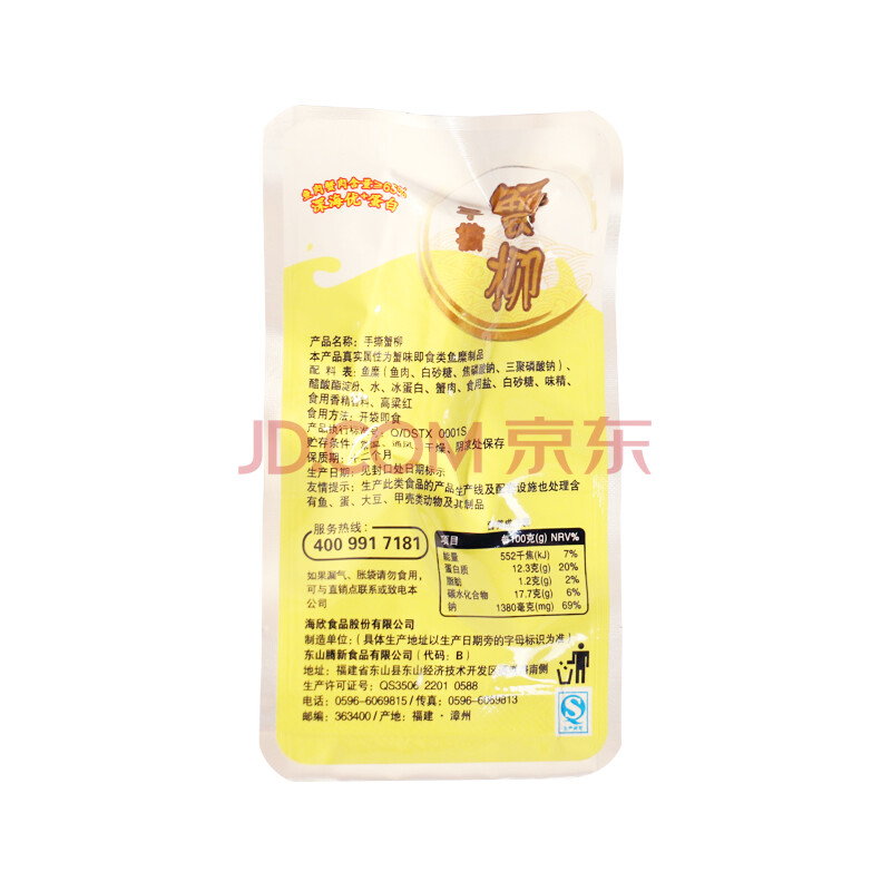 海欣休闲零食肉干肉脯 手撕蟹柳蟹肉味250g/盒(10g*25包)