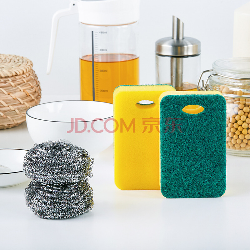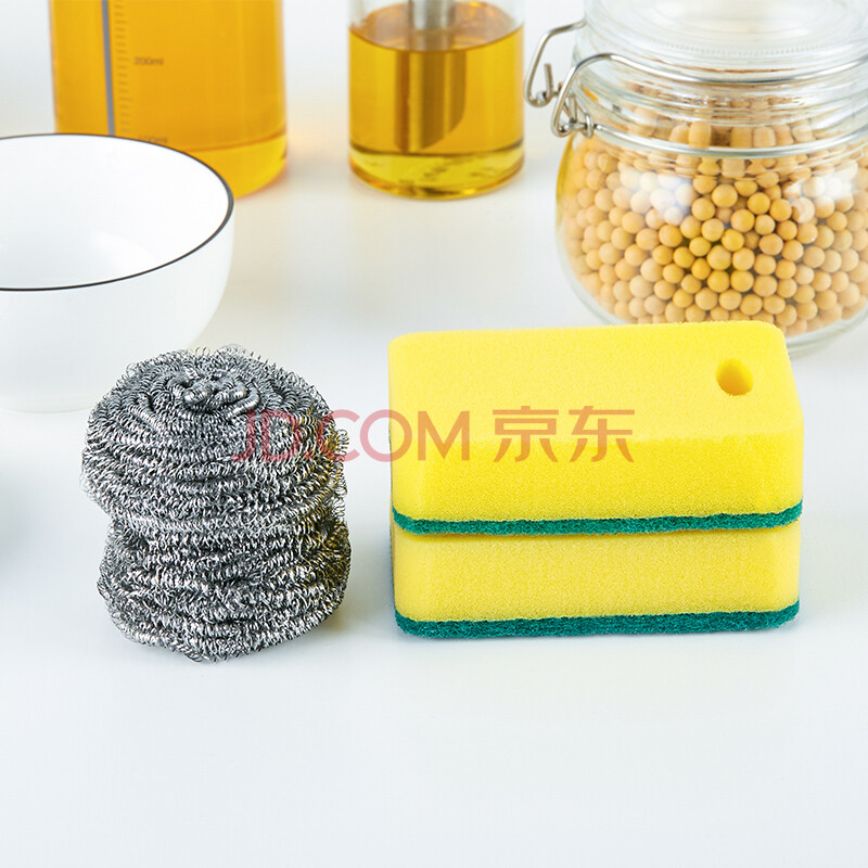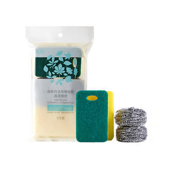 佳佰 海绵百洁布钢丝球黄金组合 海绵百洁布不粘锅 钢丝球超强去污 4件装 JB0901