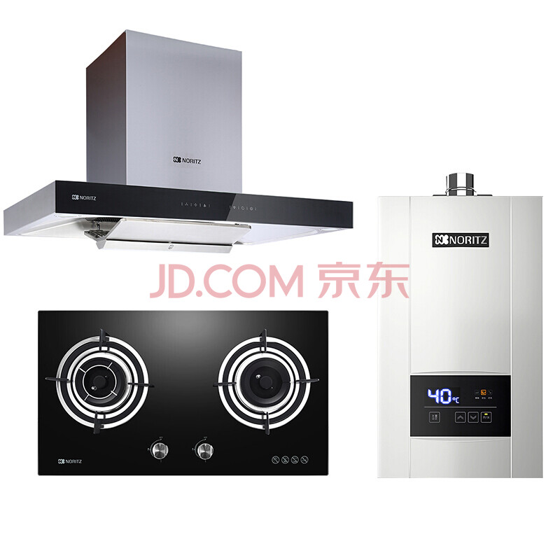 能率(NORITZ) 欧式 大吸力吸油烟机燃气灶 13升热水器套装 CXW-220-A1686+JZT-1881G+13E3FEX