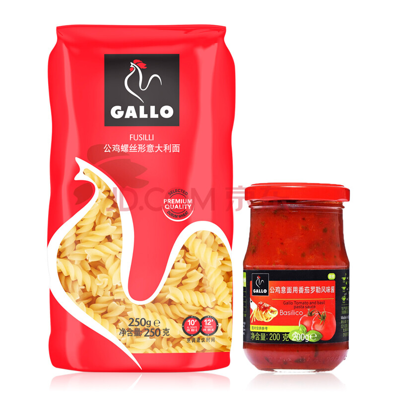 西班牙进口 公鸡(GALLO)乐享装意面酱组合(螺丝形意面+番茄罗勒意面酱)450g