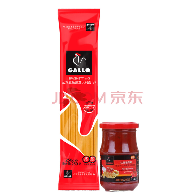 西班牙进口 公鸡(GALLO)乐享装意面酱组合(直条形意面+红辣椒意面酱)450g