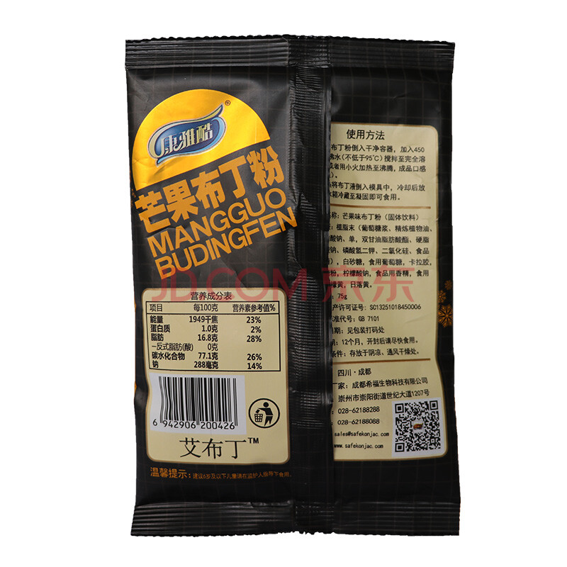 康雅酷 果冻布丁粉原料甜品牛奶芒果布丁粉75g*2袋