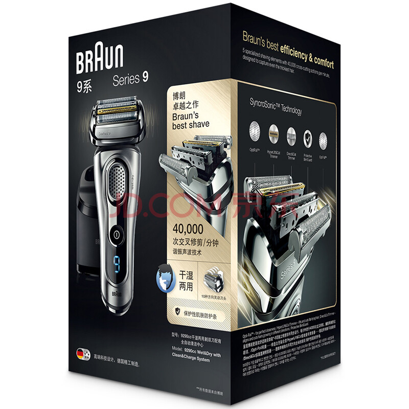 博朗(BRAUN)剃须刀电动9290cc刮胡刀胡须刀德国进口全身水洗(智能声波剃须)