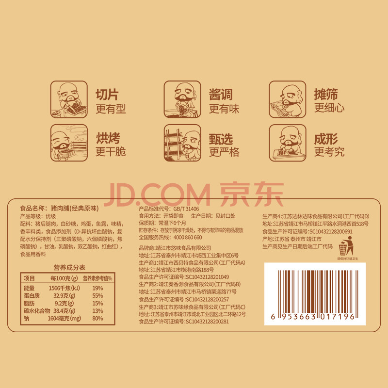 飘零大叔 肉干肉脯 休闲零食 靖江猪肉脯原味210g/袋