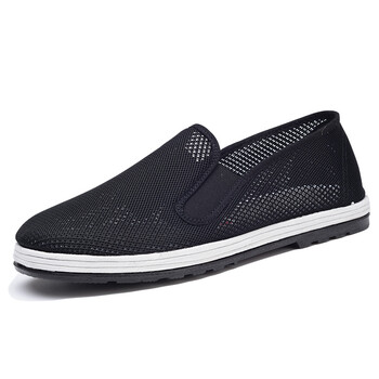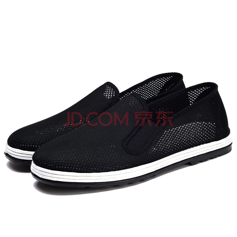 布舍元 老北京布鞋男鞋千层底舒适套脚休闲鞋大码低帮网面透气懒人网鞋 62X-7706网黑色 44码