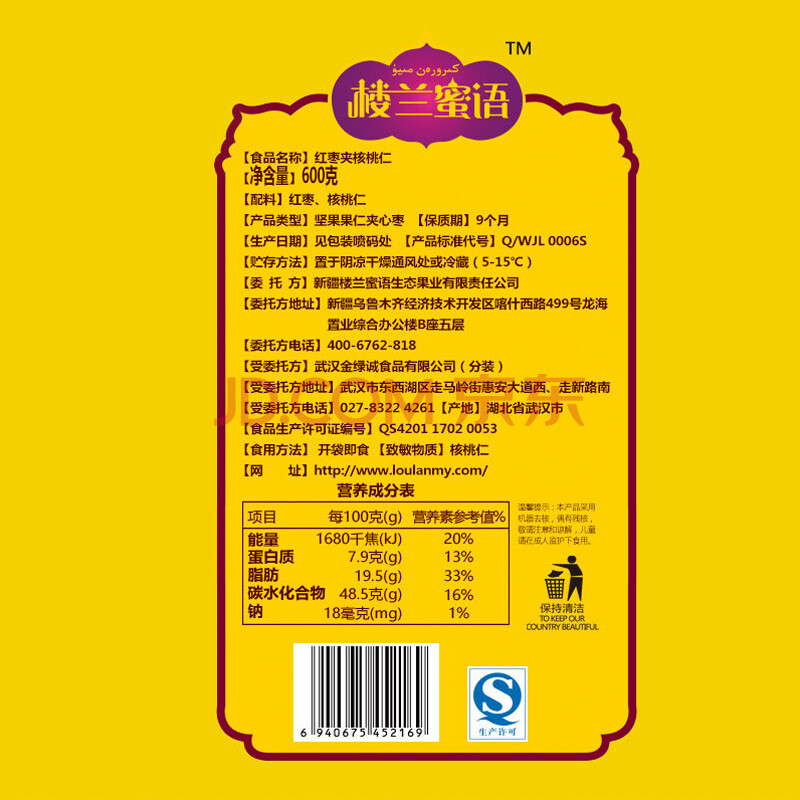 楼兰蜜语 红枣 骏枣夹核桃仁600g/盒 休闲零食 蜜饯果干 新疆特产 零食大礼包 枣夹核桃