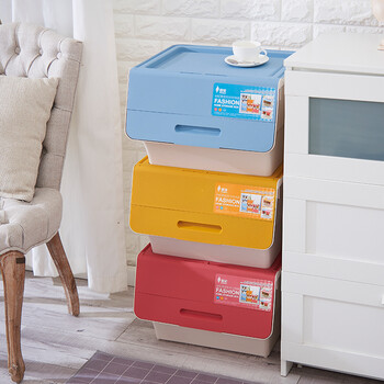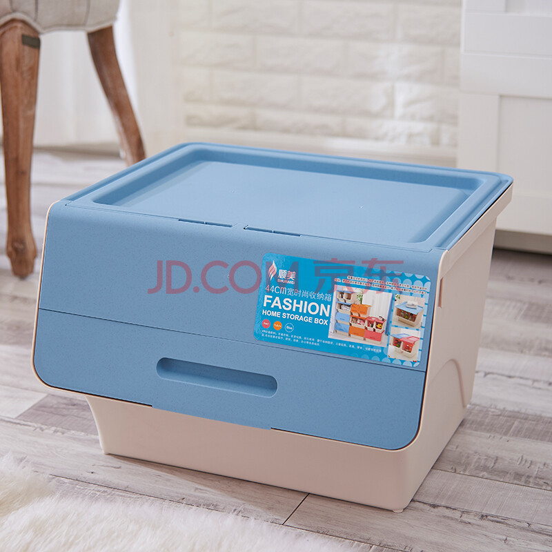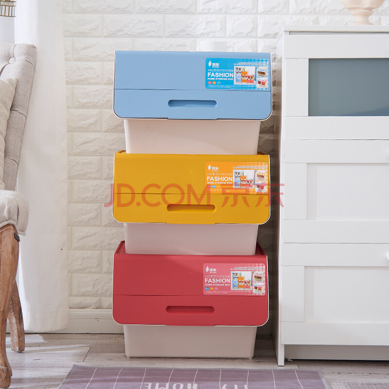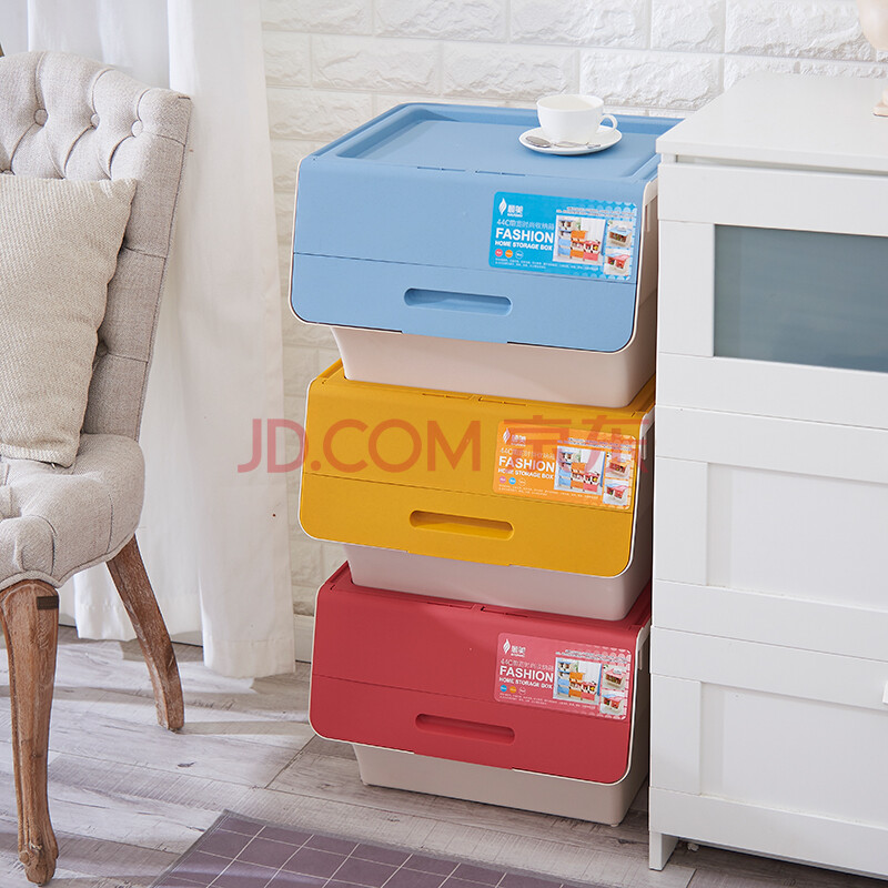 顺美 置物架前开式百纳储物箱可叠加收纳筐SM-2938颜色随机