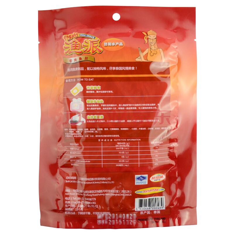 泰国进口 渔派(FISHO)渔趣 鱼干 儿童零食 香烤鱼丝泰式香辣味40g