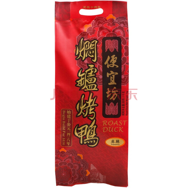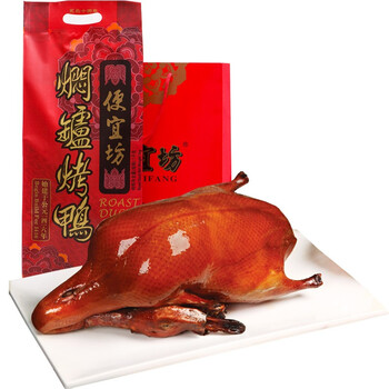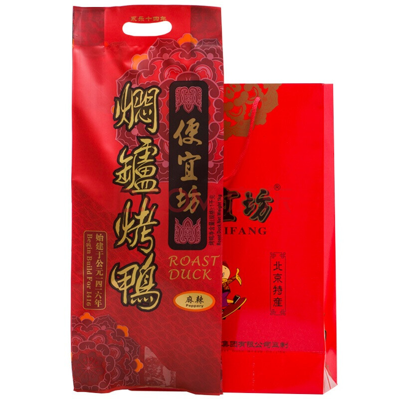 便宜坊北京烤鸭 特产 中华老字号 麻辣烤鸭 送鸭饼鸭酱切葱器礼盒袋共1250g