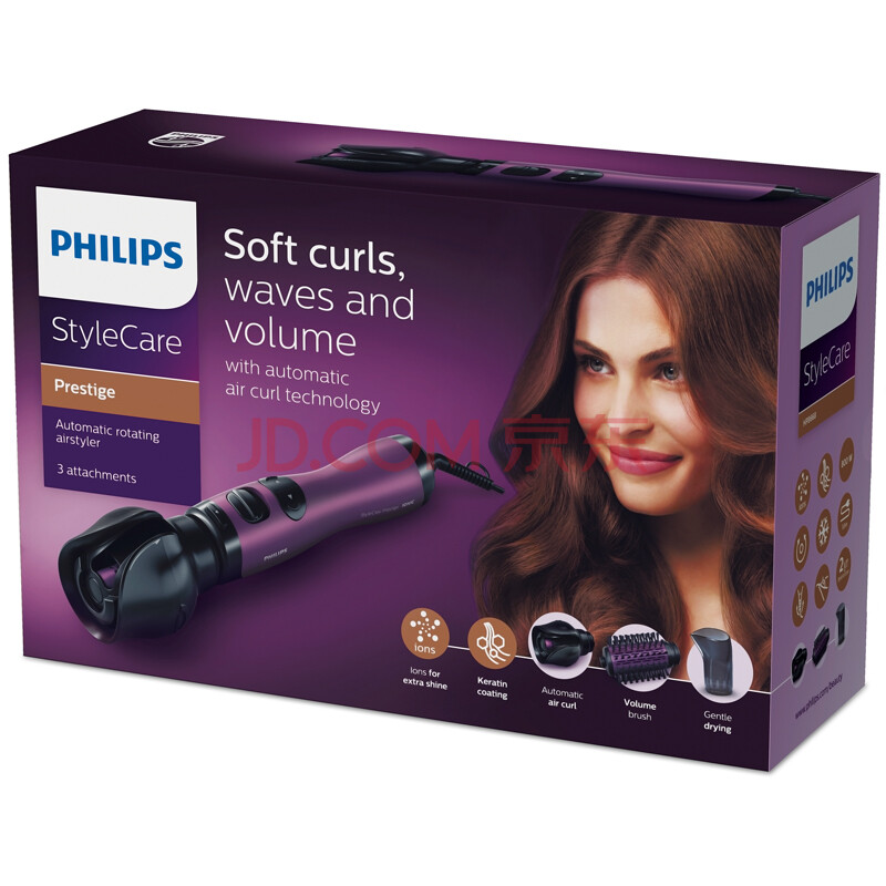 飞利浦(PHILIPS)卷直发器 半自动旋转式造型器 角蛋白陶瓷涂层 卷发棒 HP8668/05