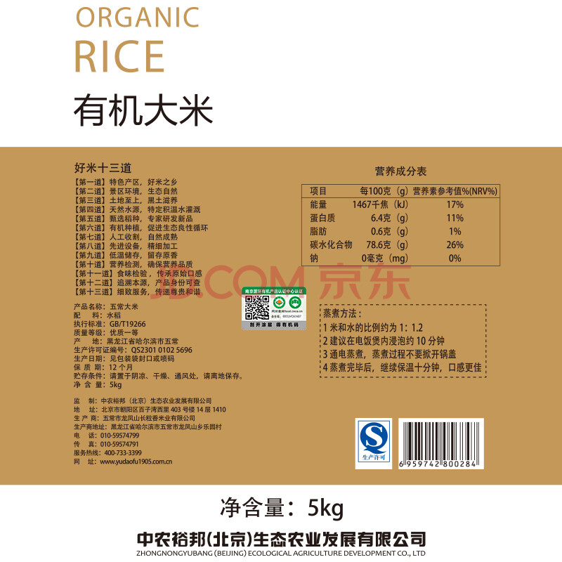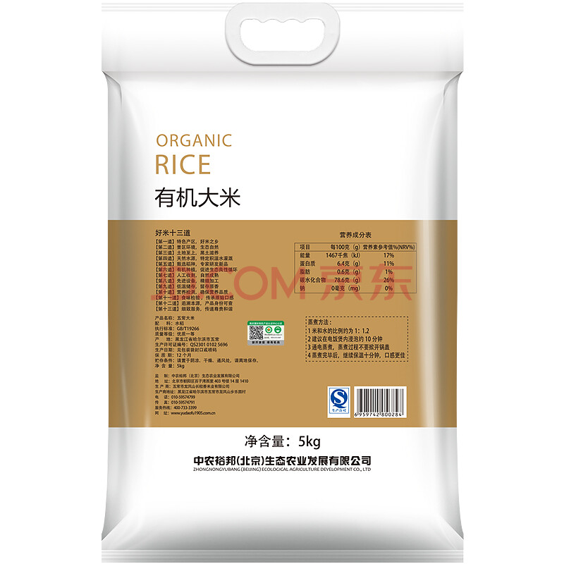裕道府 优选稻种 五常有机稻花香大米 东北大米5kg 2017新米