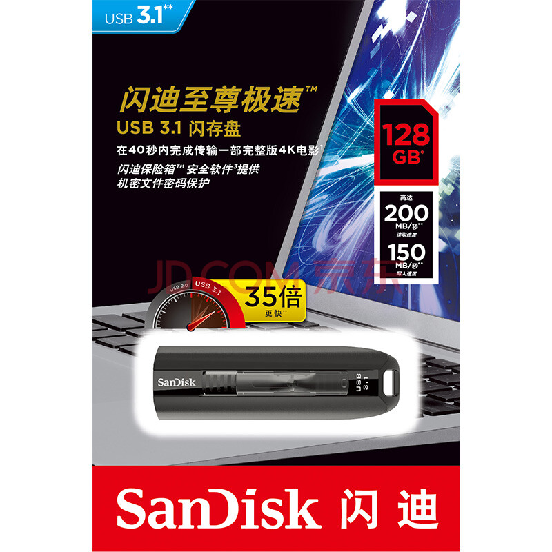闪迪(SanDisk)至尊极速USB3.1闪存盘 128GB(CZ800)