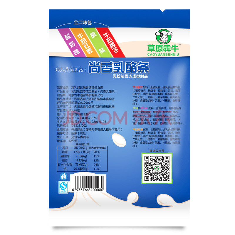草原犇牛 奶酪内蒙古乳酪条 牛奶条 牛奶棒 400g 4口味奶干奶条