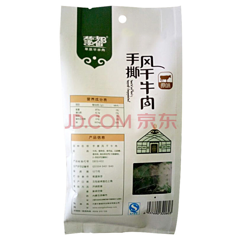 内蒙古蒙都 休闲零食 清真手撕风干牛肉干原味158g