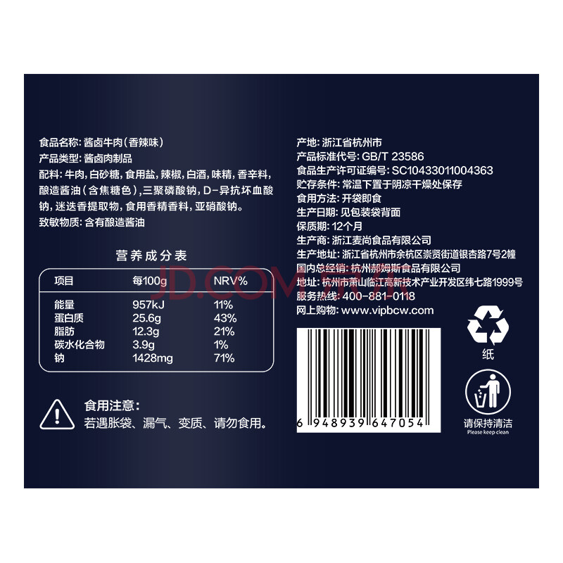 百草味 零食小吃特产卤味熟食酱牛肉肉干肉食 香辣味酱卤牛肉120g