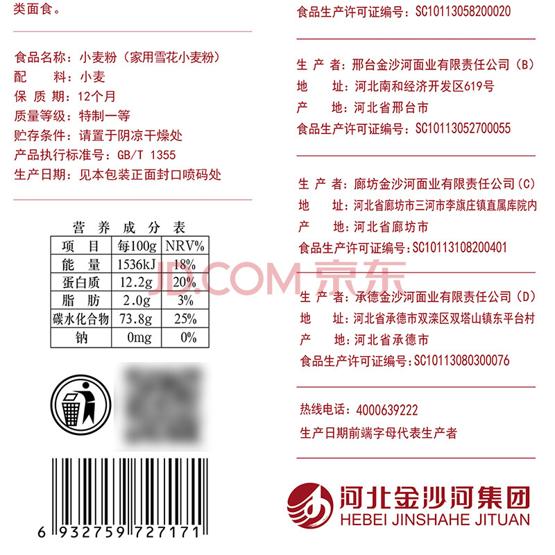 金沙河面粉家用雪花小麦粉 包子 馒头 饺子 烙饼 中筋烘焙白面粉 饺子粉 通用面粉 中式面点 家用面粉5KG