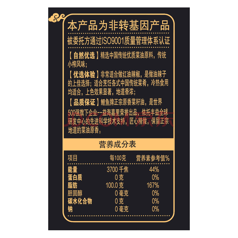 鲤鱼牌 正宗原香菜籽油5L 四川菜籽油 非转基因压榨 生态基地 小榨 食用油