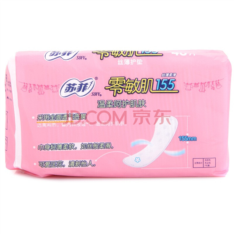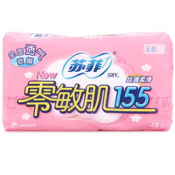 苏菲 零敏肌丝薄柔滑无香型卫生护垫155mm 48片 (新老包装随机发货)