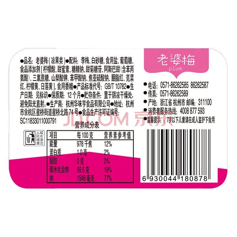 华味亨 老婆梅150g/罐 休闲食品 零食 梅子 话梅 办公零食小吃