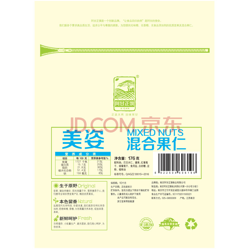 阿甘正馔 美姿混合果干坚果仁 坚果零食176g/袋