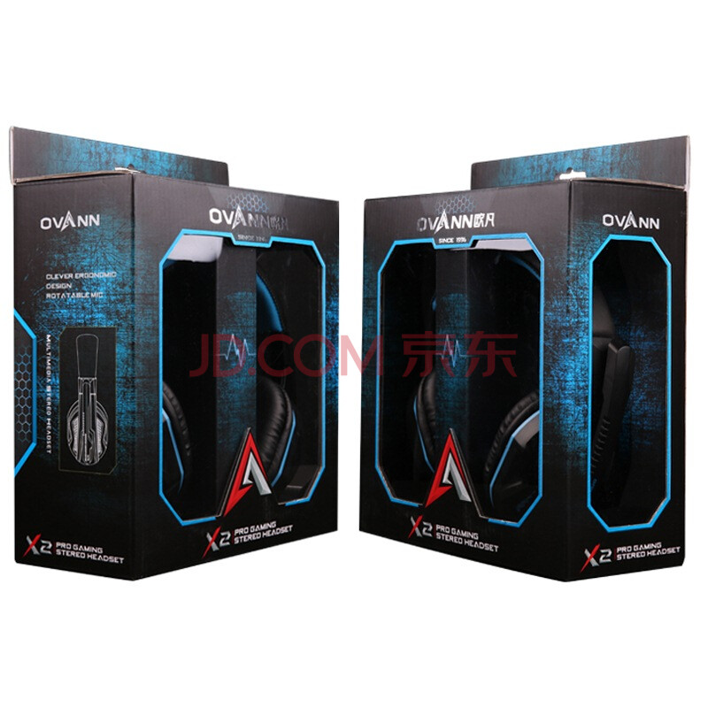 欧凡(OVANN)X2 头戴式专业游戏电脑耳机耳麦 语音带麦克风话筒双插头 黑蓝色